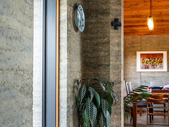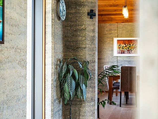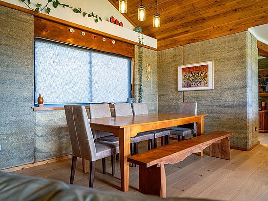 Large, light-filled living spaces showcase thoughtful architectural planning, while the rammed earth walls provide thermal mass, comfort, and timeless beauty. This home represents the best of sustainable rural living, combining elegant design with robust engineering.