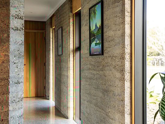 A spacious and affordable family home, Rammed Earth Home brings together warmth, resilience, and natural materials in one of Northland’s most serene rural settings. Designed by Armin Thuma and built by Modern Earth Homes, this residence features exposed native and exotic timbers throughout the living area - all engineered and detailed by Taiao to enhance the home’s character and durability.